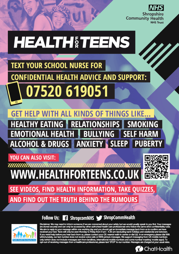 Prefer to text? You can also text a school nurse on: 0752 061 9051 or call 0333 3583328.