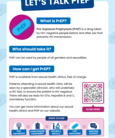 A poster for GP surgeries with information on PrEP, including how to access it.